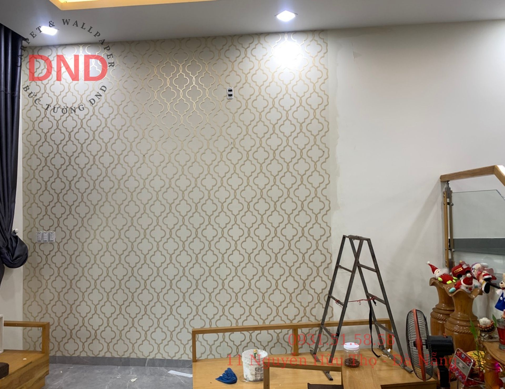 Thi công giấy dán tường phòng khách tại 356/93 Hoàng Diệu – ĐN